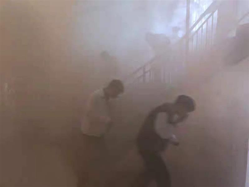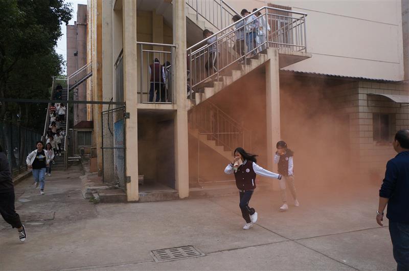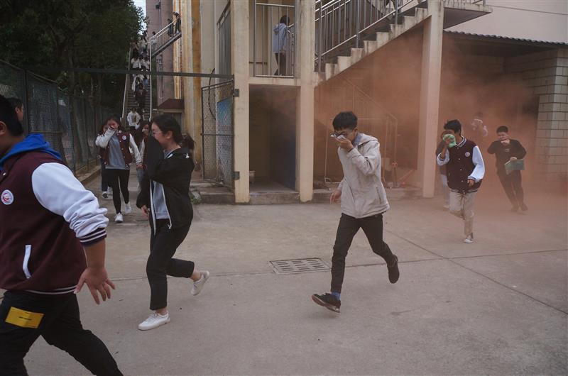 报告会后,全体住校生举行了学生公寓火灾疏散演练。随着火情警报声,一场学生公寓安全疏散演习在学生公寓展开,300余名师生参加了演习。