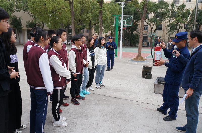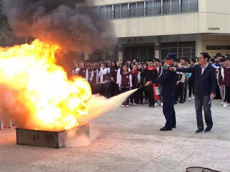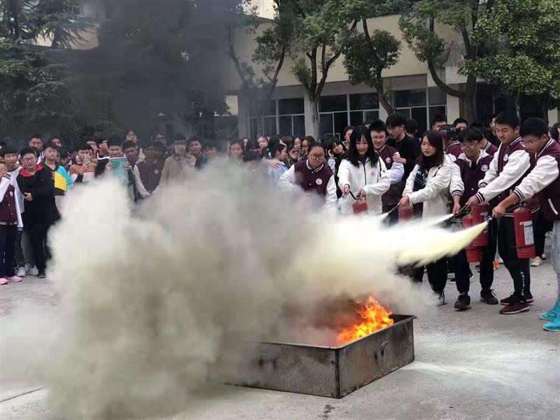 疏散活动结束后,进行火盆干粉灭火器灭火演练。演练中,消防官兵向全校师生示范并讲解了如何正确使用灭火器及使用要领,各年级学生代表参加了灭火实战演练。