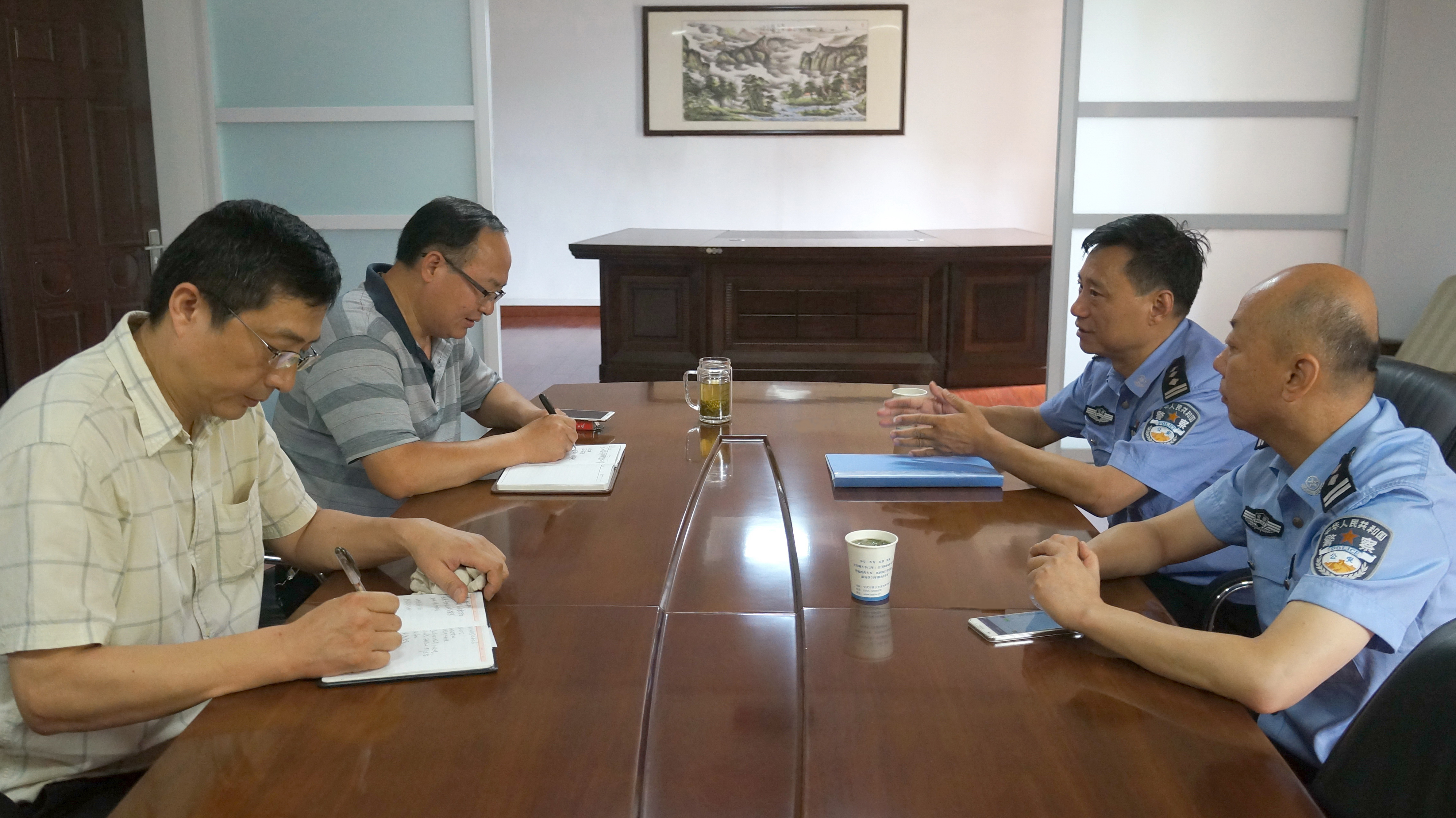 6月20日上午,市公安局迎江分局国保大队教导员袁启升和华中路派出所干警沈方俊一行对华体网页版页面登录反恐防暴工作进行了专项督导检查。副校长周光纯与保卫处负责人陪同检查。