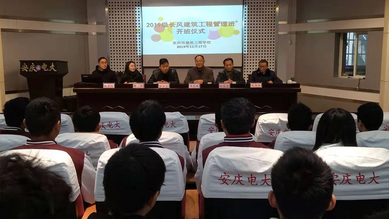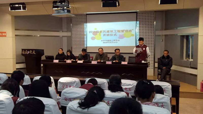 12月17日下午,华体网页版页面登录与安徽长风建设集团校企合作举办的“2019级长风建筑工程管理班”开班仪式在C楼报告厅隆重举行。长风集团总经理孙宝金、办公室主任路莉和华体网页版页面登录副校长周光纯、招就处主任张国祥、职成处主任程学刚、教务处主要负责人陈尚志出席,该班全体同学参加了仪式。仪式由张国祥主任主持。