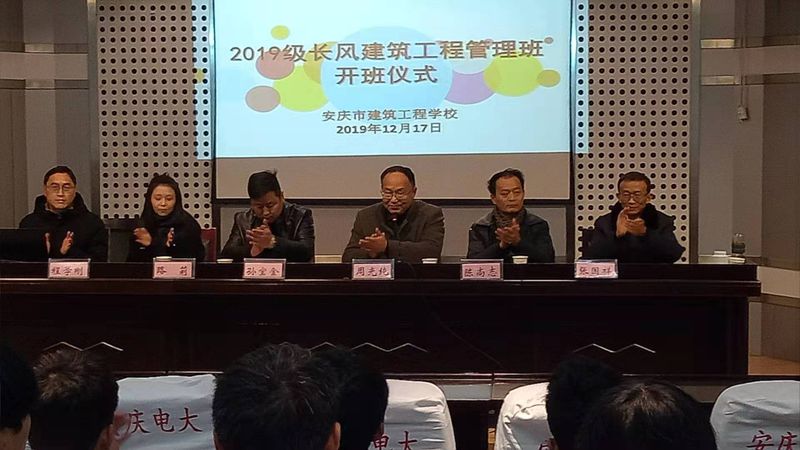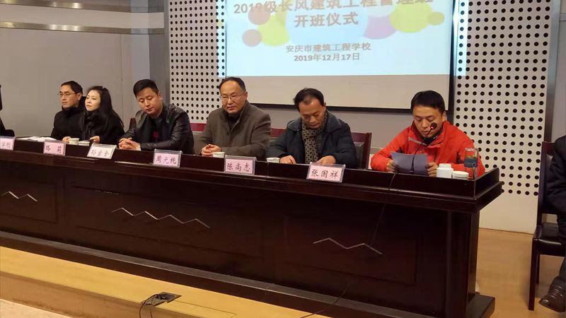 周光纯对“2019级长风建筑工程管理班”开班表示热烈的祝贺,向安徽长风建设集团对华体网页版页面登录开展校企合作工作的支持表示衷心的感谢。周校长指出,学校和企业双方共同参与人才的培养过程,校企合作,优势互补,是培养企业所需应用型人才,促进企业融入长三角一体化发展的有力举措,是实现教育链和产业链有机融合,全面提升职业教育服务安庆首位产业高质量发展能力的有效途径,希望在合作办班的基础上进一步开展师资互聘、共建培训平台等深层次的合作,共同提升学校的办学质量与企业的管理水平,希望同学们珍惜学习机会,抓住学校和企业共同提供的实践平台,扎实学习与岗位能力要求相适应的专业技能,早日成为企业满意、学校满意、家长满意的国家栋梁之材。