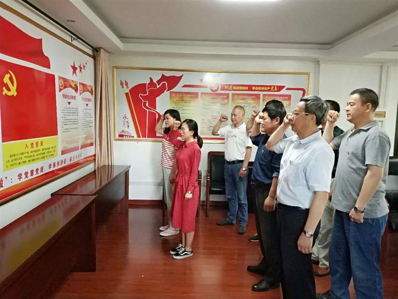 会议共分三项议程,首先举行了2020年度新发展的预备党员入党宣誓仪式。大会伊始,支部宣传委员王贵平同志宣读了张纯同志入党申请的批复文件结果,组织同意接收张纯同志为中共预备党员。全体与会人员起立,奏唱《国际歌》。由第一支部李玲领誓,全体党员面对党旗,高举右拳,庄严宣誓。宣誓后,由正式党员李玲为预备党员张纯佩戴党徽。张纯同志表达激动之情之余向党组织承诺:一是不忘初心,牢记使命;二是牢记宗旨,服务集体;三是学习先进,争当优秀。