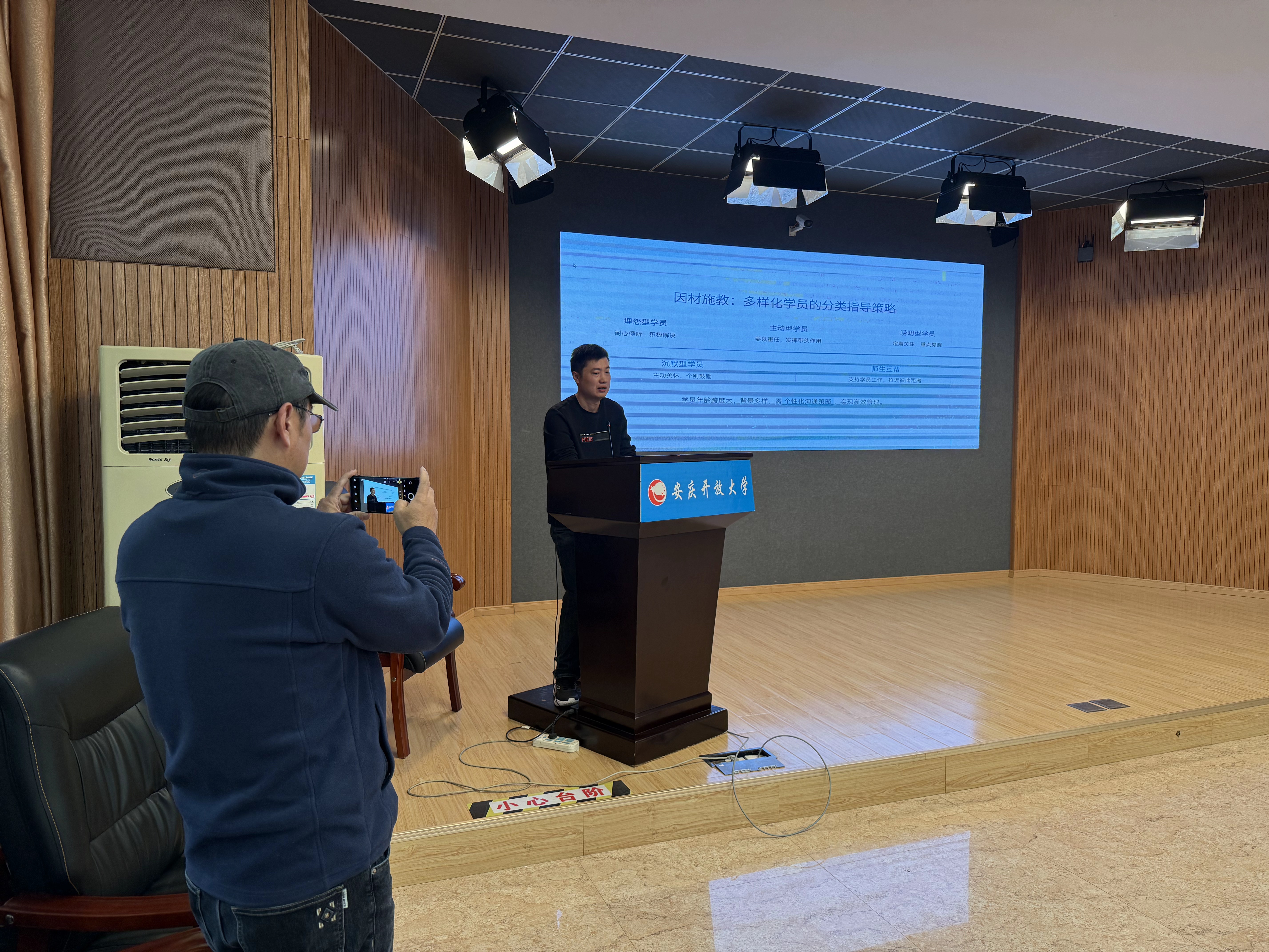 比赛间隙,陈庆玲与第一党支部其他志愿服务队成员座谈交流,她强调:“志愿服务是学校精神文明建设的重要载体,更是‘三全育人’的生动实践。班主任是开放教育学生成长的引路人,我们用优质志愿服务保障班主任基本功大赛,就是为了让育人者感受到关怀与支持,进而将这份温暖传递给更多学生。”她勉励全体志愿者要以此次赛事为契机,总结服务经验,将志愿服务精神融入日常学习工作中,形成“人人参与志愿服务、人人践行育人初心”的良好氛围。