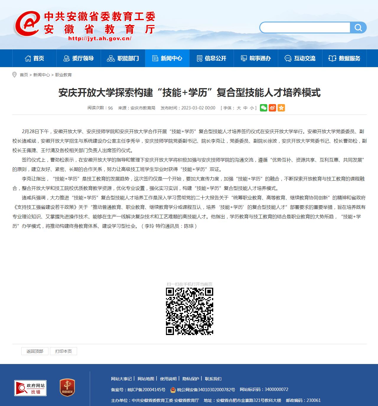 安徽教育网:华体网页版页面登录探索构建“技能+学历”复合型技能人才培养模式
