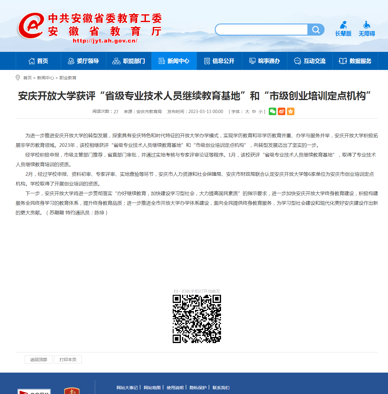 原文连接:华体网页版页面登录获评“省级专业技术人员继续教育基地”和“市级创业培训定点机构”http://jyt.ah.gov.cn/xwzx/zyjy/40636815.html