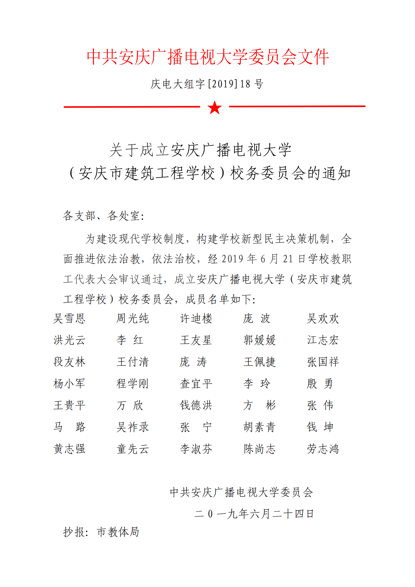 【2019】18号关于成立校务委员会的通知