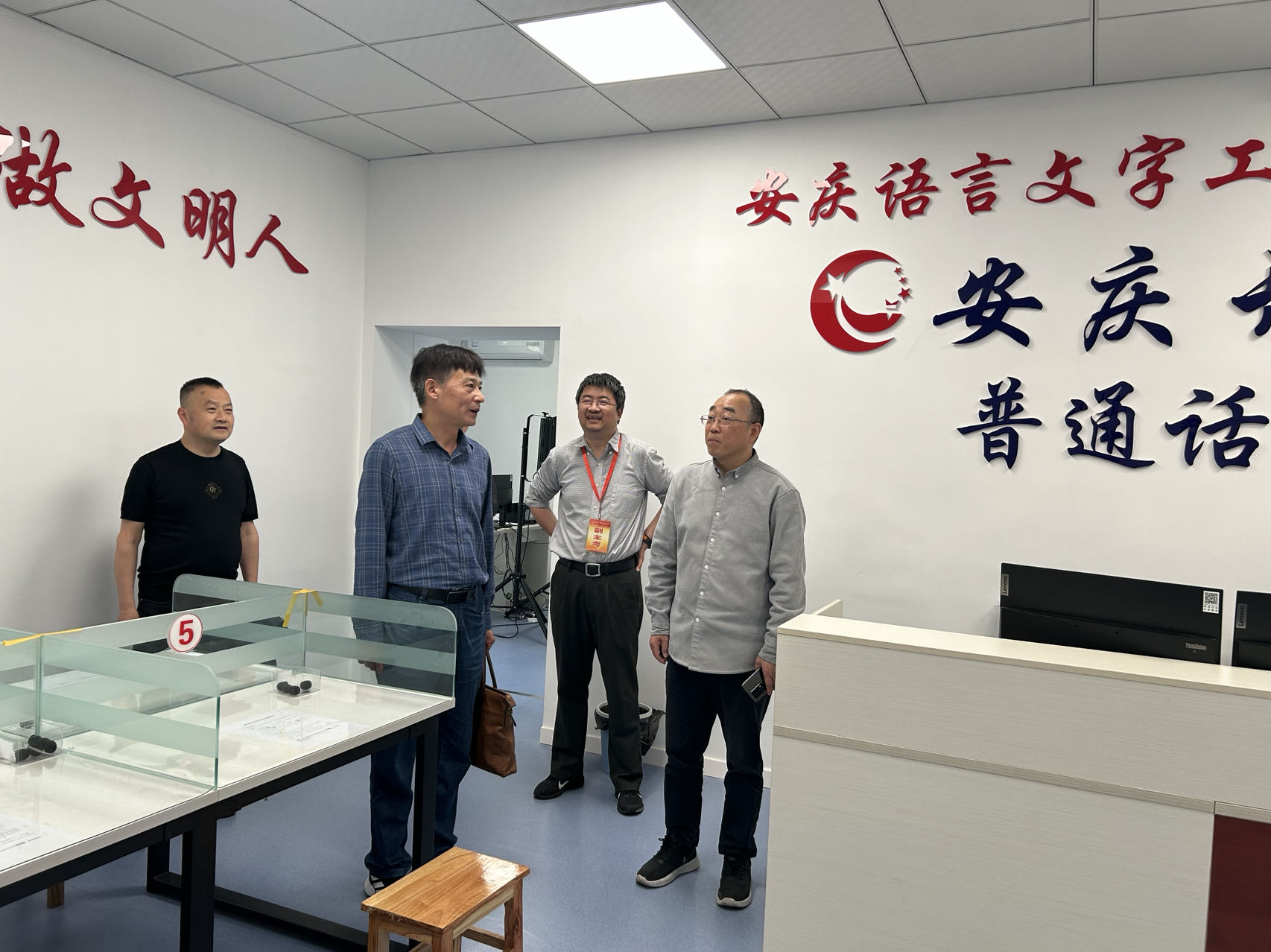 5月6日上午,安徽省普通话培训测试中心副主任单明、韩伟光老师一行到华体网页版页面登录开展普通话水平测试站检查巡视工作。安庆市教体局语委办主任姚久大、华体网页版页面登录副校长、安庆市普通话水平测试站站长王佩捷和华体网页版页面登录副校长王付清随同陪行。