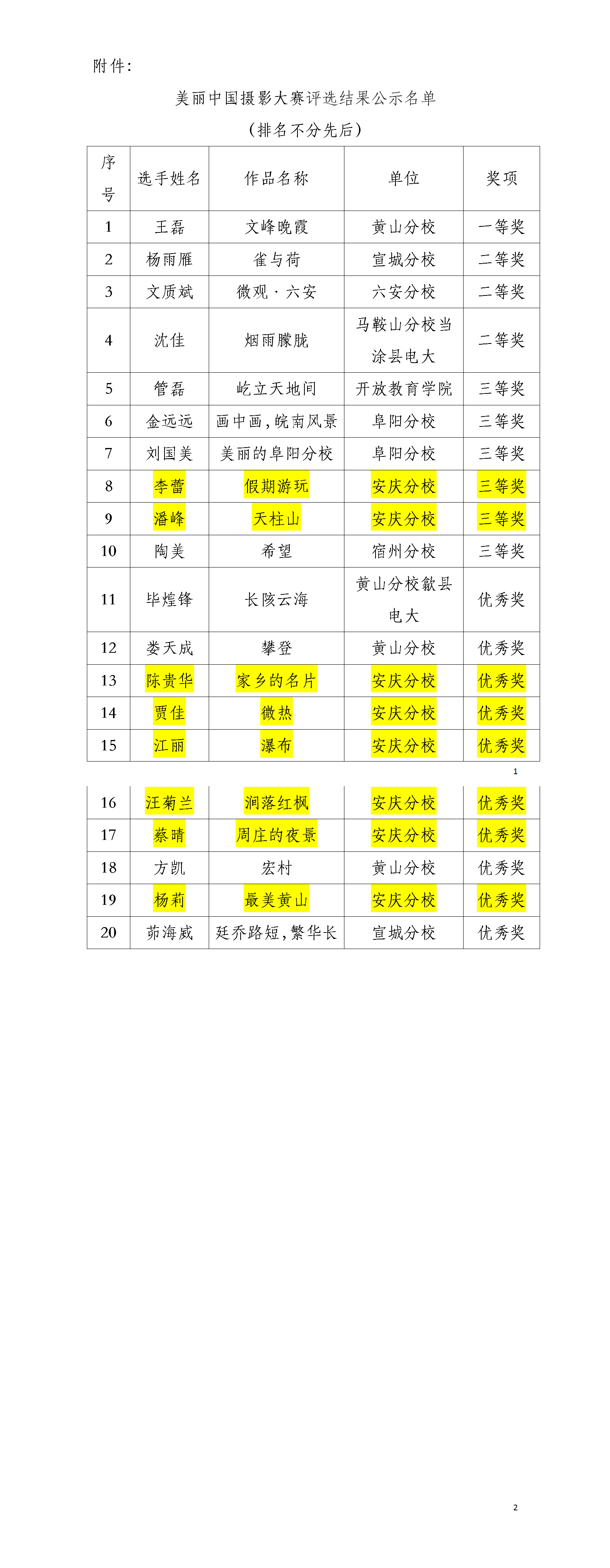 省校组织专家对活动作品进行评审,在美丽中国摄影大赛活动中,荣获一等奖1个、二等奖3个、三等奖6个、优秀奖10个。现将专家评审结果予以公示(见附件)。