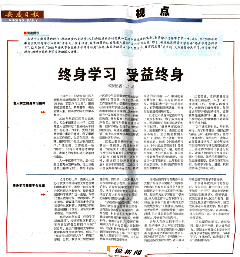 安庆日报:终身学习 受益终身