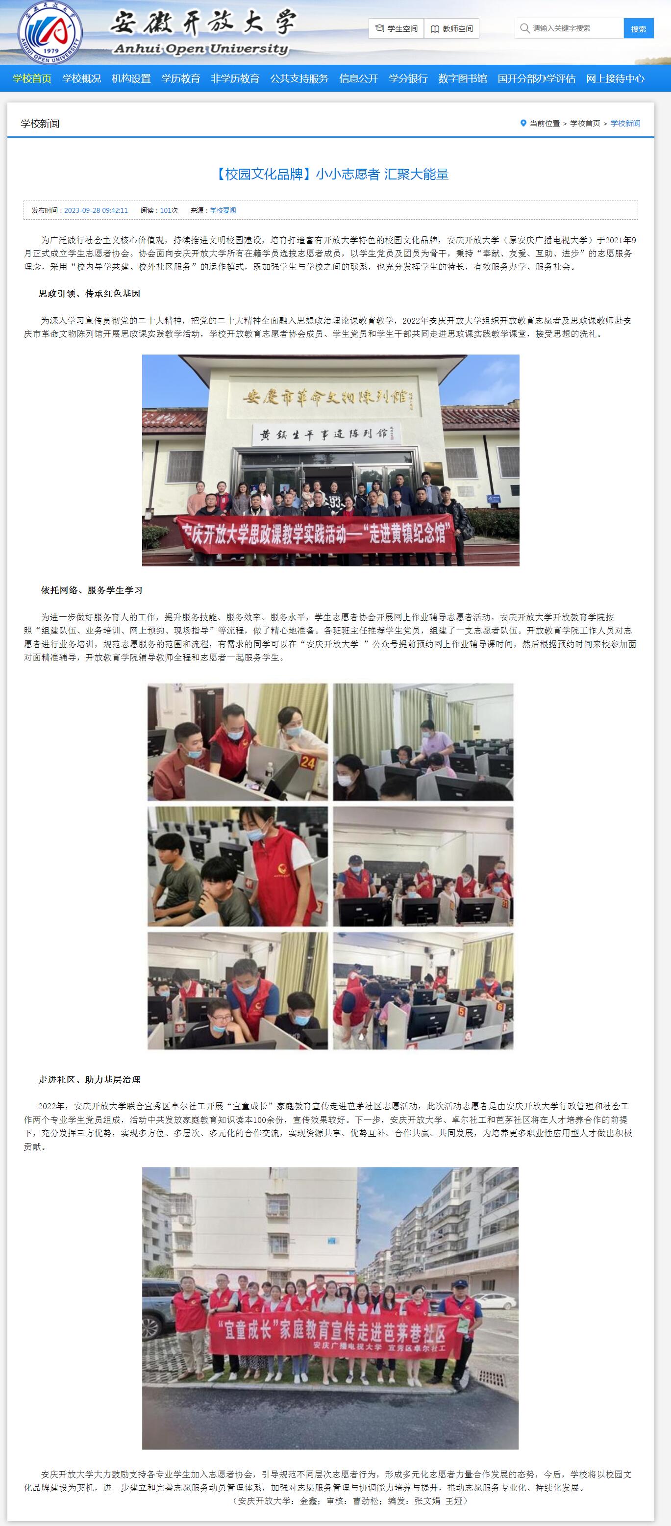 安徽开放大学:【校园文化品牌】小小志愿者 汇聚大能量