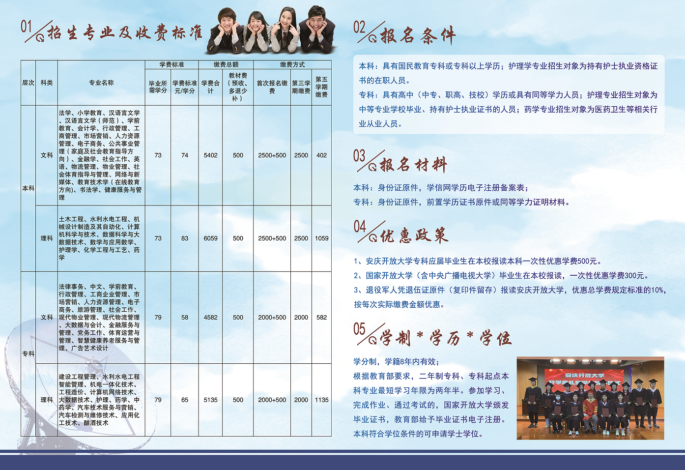 2、国家开放大学(含中央广播电视大学)毕业生在本校报读,一次性优惠学费300元。